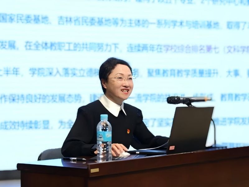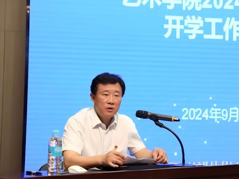 大会在庄严的国歌中拉开序幕,首先崔玉花院长作了上半年的工作总结,对2024年上半年学院师资队伍建设、学科专业建设、科研与艺术实践、就业工作等方面进行了全面回顾,肯定了学院上半年成果的同时指出了学院目前教学、科研等方面存在的不足,并对2024年下半年的学院工作进行部署。崔玉花院长强调,学院将以深化改革为主线,提高综合办学水平和核心竞争力,坚持以高起点规划、高标准建设、高质量发展、高水平目标的“四高”原则,以胸怀“为建设国内一流、国际知名、特色鲜明的高水平大学”的格局和气度,谋划学院战略与发展。