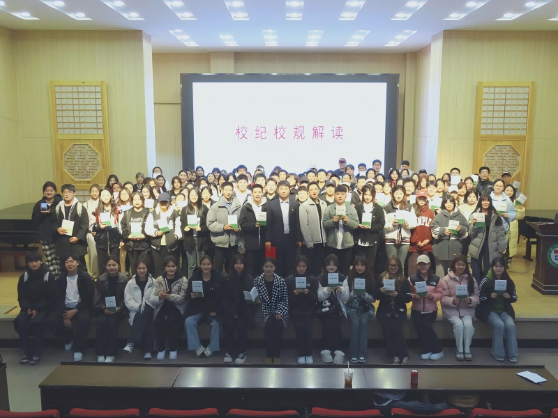 活动伊始,黄老师分别从学生管理规定、学籍管理规定、奖惩制度、宿舍管理规定等多个方面进行了详细解读,并结合实际案例,深入浅出地为新生们讲解了各项规定的具体内容和要求。强调了“校纪校规”对于维护校园秩序、保障学生权益以及促进学生成长成才的重要意义。“校纪校规”是学校的基本管理制度,是全体师生共同遵守的行为规范,希望新生们能够认真学习、深刻领会,将其内化于心、外化于行,从入学之初就养成良好的行为习惯和学习习惯。