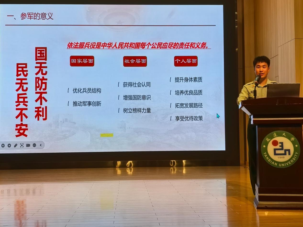 在政策解读环节,于滨源详细介绍了应征入伍的年龄要求、身体条件、政治审查标准等基础条件,同时重点解读了大学生参军在学费补偿、考研加分、就业安置等方面的优惠政策。对于美高美游戏网址登录的毕业生而言,这些政策不仅为他们投身军旅提供了坚实保障,也为未来的职业发展开辟了新的路径。