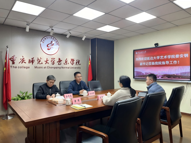 在重庆师范大学音乐学院双方共同探讨了党建引领、艺术思政、就业育人等工作。并就如何通过创新艺术作品等多种形式,科学选择音乐、舞蹈和戏剧作品等艺术形式,提高思政教育的亲和力和吸引力,唤醒学生的主观能动性,建设入脑、入魂、入行的思政课,以中国艺术力量激扬思政课育人、就业育人进行了深入交流;在四川师范大学音乐学院双方就人才培养、学生实习、就业创业、升学深造等方面进行全方位深度交流,并针对我院优秀毕业生向用人单位进行了跟踪调查,以期为培养更多优秀艺术人才创造更大的成长空间,探索出更加多样化的就业发展路径。